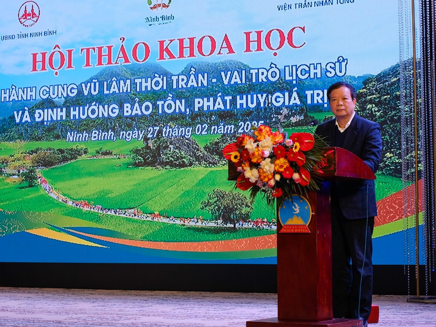 Nhận lời mời của Ban tổ chức, ngày 27/02/2025 Ban lãnh đạo Viện Khoa học, Xã hội và Đổi mới sáng tạo đã tham dự Hội thảo Khoa học "Hành cung Vũ Lâm thời Trần - Vai trò lịch sử và định hướng bảo tồn, phát huy giá trị". Hội thảo do UBND tỉnh Ninh Bình phối hợp với Viện Trần Nhân Tông (Đại học Quốc gia Hà Nội) tổ chức Hội thảo hướng đến việc nhận diện đầy đủ hơn giá trị lịch sử, văn hóa của Hành cung Vũ Lâm thời Trần trong tiến trình lịch sử dân tộc, đồng thời thảo luận các định hướng bảo tồn và phát huy hiệu quả di tích, góp phần phát triển du lịch bền vững, khẳng định vị thế của Ninh Bình trong hệ thống các thành phố di sản văn hóa của Việt Nam và thế giới.