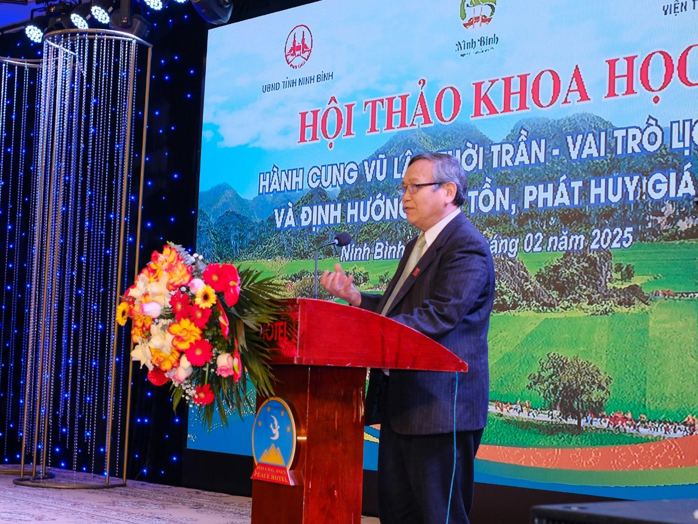 Nhận lời mời của Ban tổ chức, ngày 27/02/2025 Ban lãnh đạo Viện Khoa học, Xã hội và Đổi mới sáng tạo đã tham dự Hội thảo Khoa học "Hành cung Vũ Lâm thời Trần - Vai trò lịch sử và định hướng bảo tồn, phát huy giá trị". Hội thảo do UBND tỉnh Ninh Bình phối hợp với Viện Trần Nhân Tông (Đại học Quốc gia Hà Nội) tổ chức Hội thảo hướng đến việc nhận diện đầy đủ hơn giá trị lịch sử, văn hóa của Hành cung Vũ Lâm thời Trần trong tiến trình lịch sử dân tộc, đồng thời thảo luận các định hướng bảo tồn và phát huy hiệu quả di tích, góp phần phát triển du lịch bền vững, khẳng định vị thế của Ninh Bình trong hệ thống các thành phố di sản văn hóa của Việt Nam và thế giới.