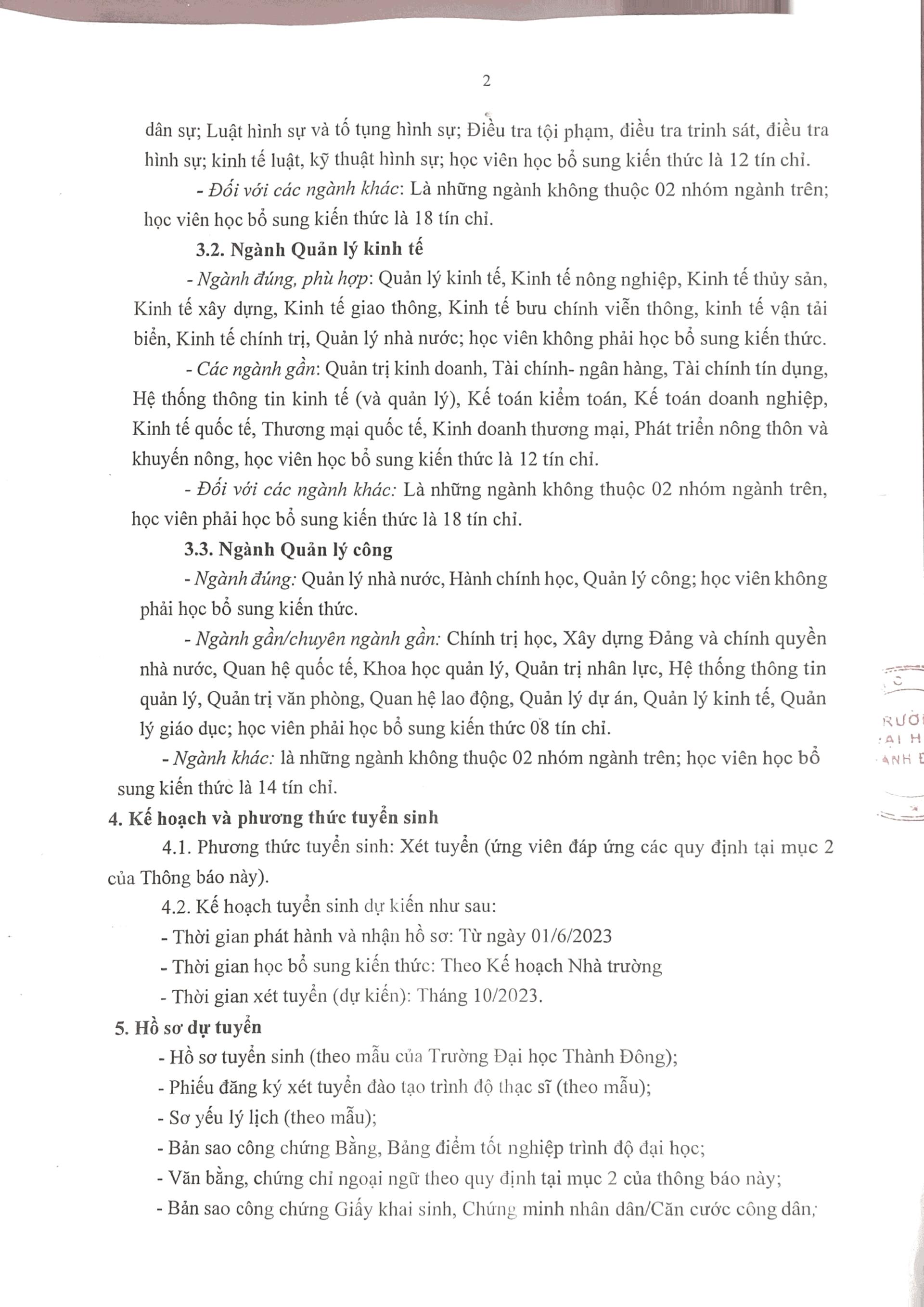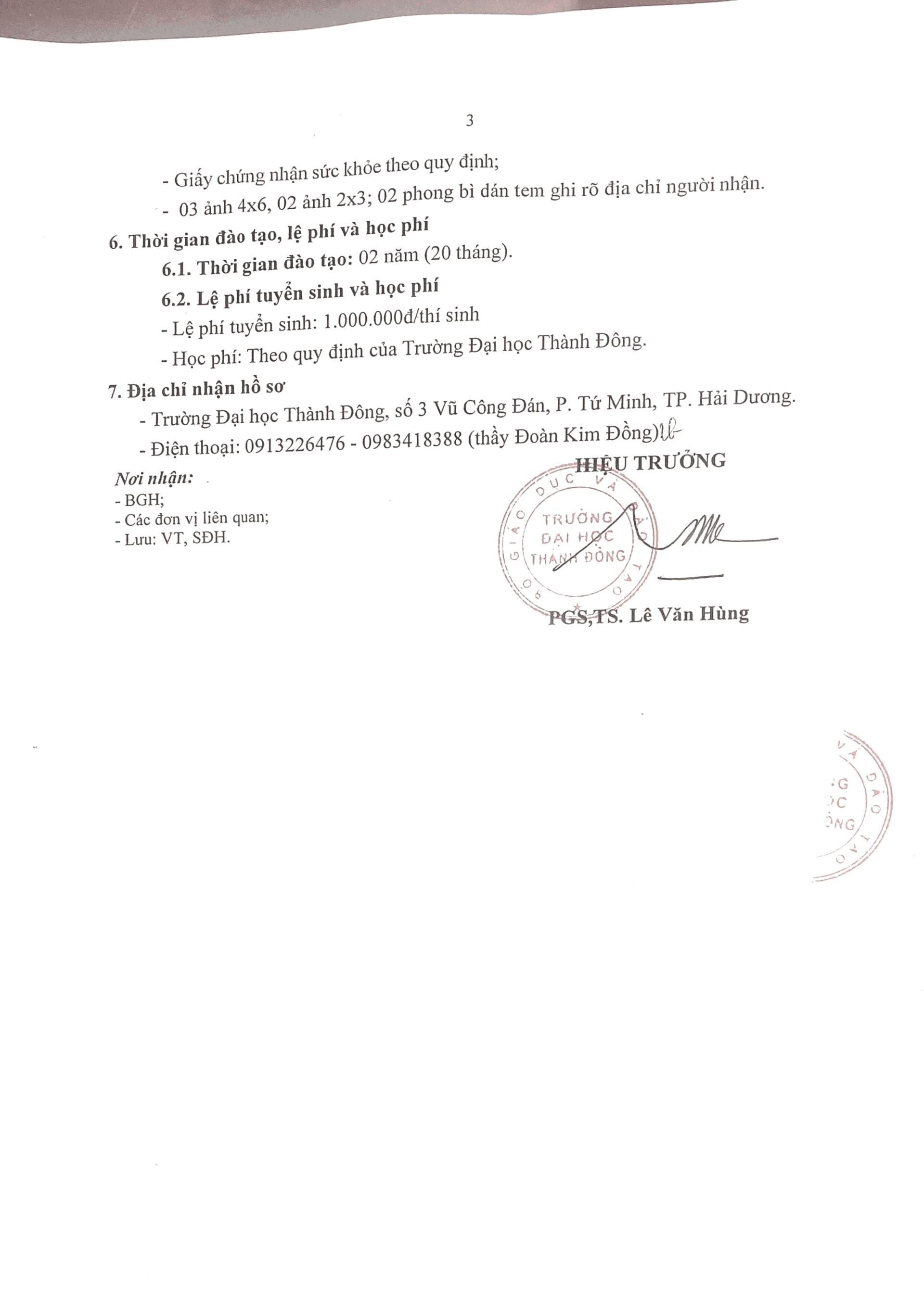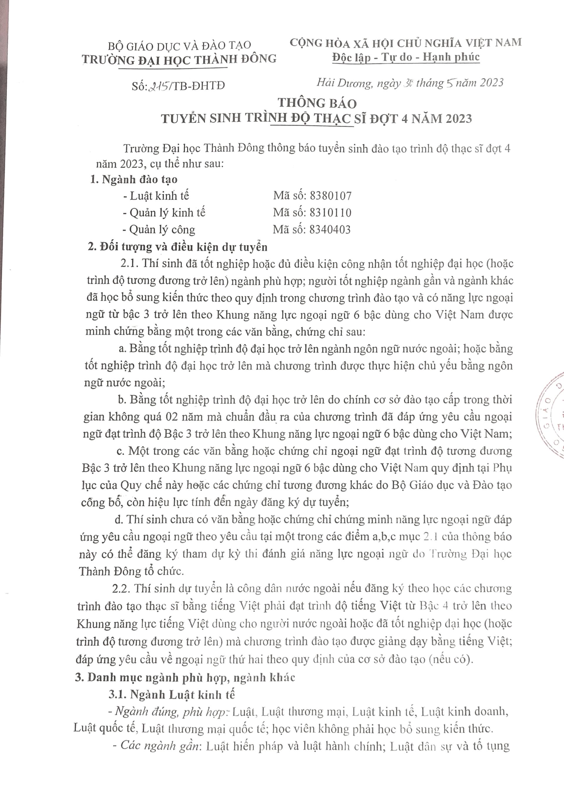 Trường Đại học Thành Đông thông báo tuyển sinh đào tạo trình độ thạc sĩ đợt 4 năm 2023